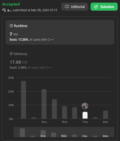 더 빠른 다른 답들은 재귀함수를 쓴 로직들로 접근이 조금 다르다.