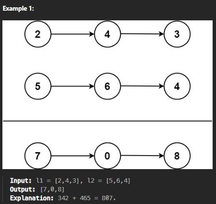 public ListNode AddTwoNumbers(ListNode l1, ListNode l2)