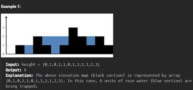 Q. 각 배열값이 기둥의 높이를 의미하는 배열 height 가 주어질 때, 해당 기둥들에 물을 가둔다면, 가둘 수 있는 물의 양을 계산하라.