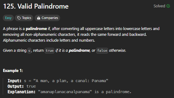 Q. 문자열 s 가 주어질 때, 문자와 숫자에 대해 palindrome한지 확인 하라.