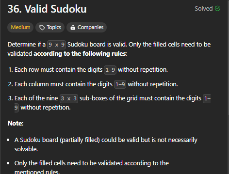 public bool IsValidSudoku(char[][] board)