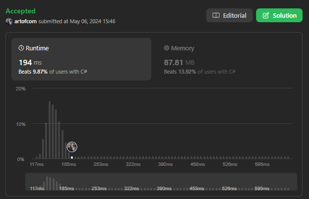 LINQ를 활용한 정렬 String.Concat(strs[q].OrderBy(c => c)); 를 사용했더니, 다소 느리게 나왔다.