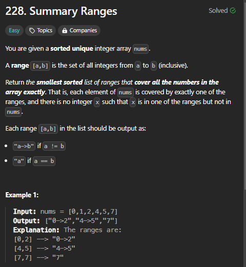 https://leetcode.com/problems/summary-ranges/description