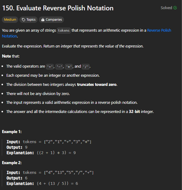https://leetcode.com/problems/evaluate-reverse-polish-notation/description