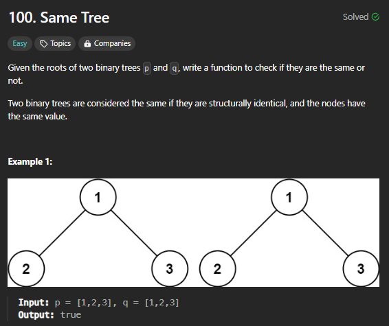 Q. 주어진 두 tree가 동일한 tree인지 판단하라.