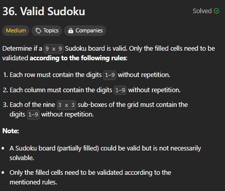 https://leetcode.com/problems/valid-sudoku/description/