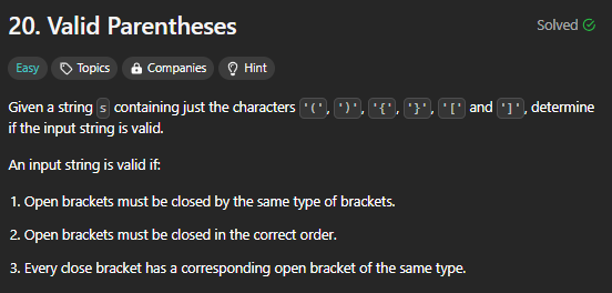 주어진 문장에서의 괄호 구조가 유효한지 판단하라.