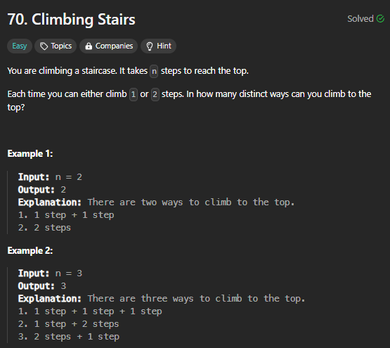 [1D DP][Easy] 70. Climbing Stairs
