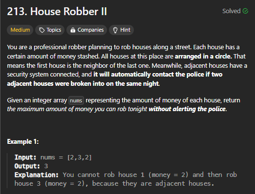 [1-DP][Medium] 213. House Robber II