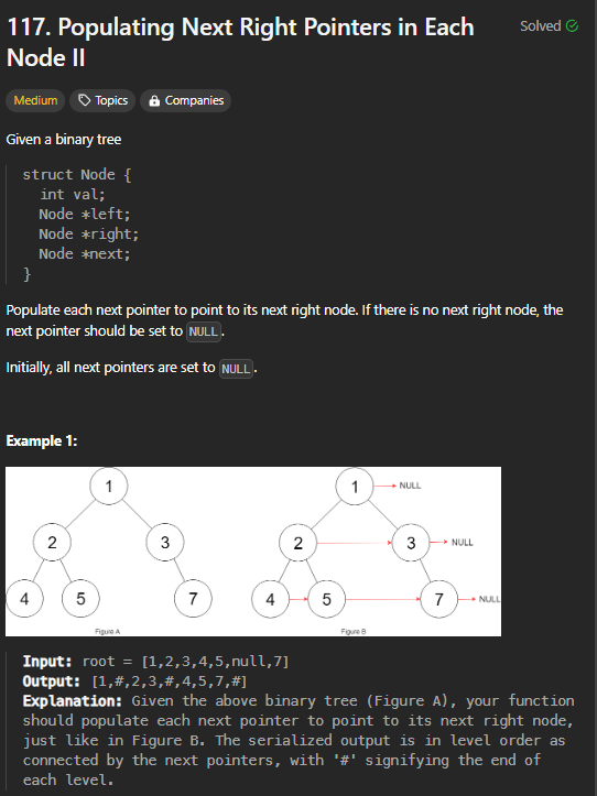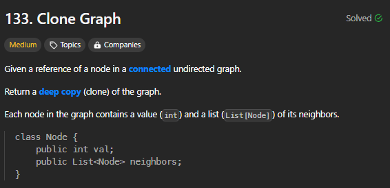 https://leetcode.com/problems/clone-graph/description Q. 주어진 그래프를 deep copy 하여 반환하라. Solution 기존 graph를 순회하며 모든 node의 포인터를 중복되지 않게 우선 저장한다. 이후 각 노드의 neighbors만큼 새로운 node를 만든다. 새로운 노드를 순회하며, 각자의 neighbors에 새로운 node를 link한다. 코드 더보기 Node* cloneGraph(Node* node) { if(node == nullptr) return node; // adding nodes into map. set setNodes; queue qBuff; qBuff.push(node); while(qBu..
